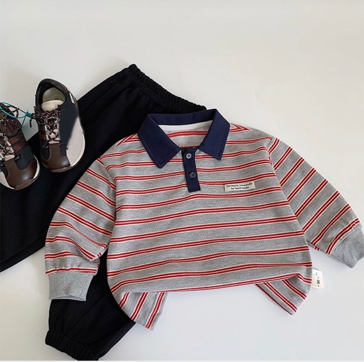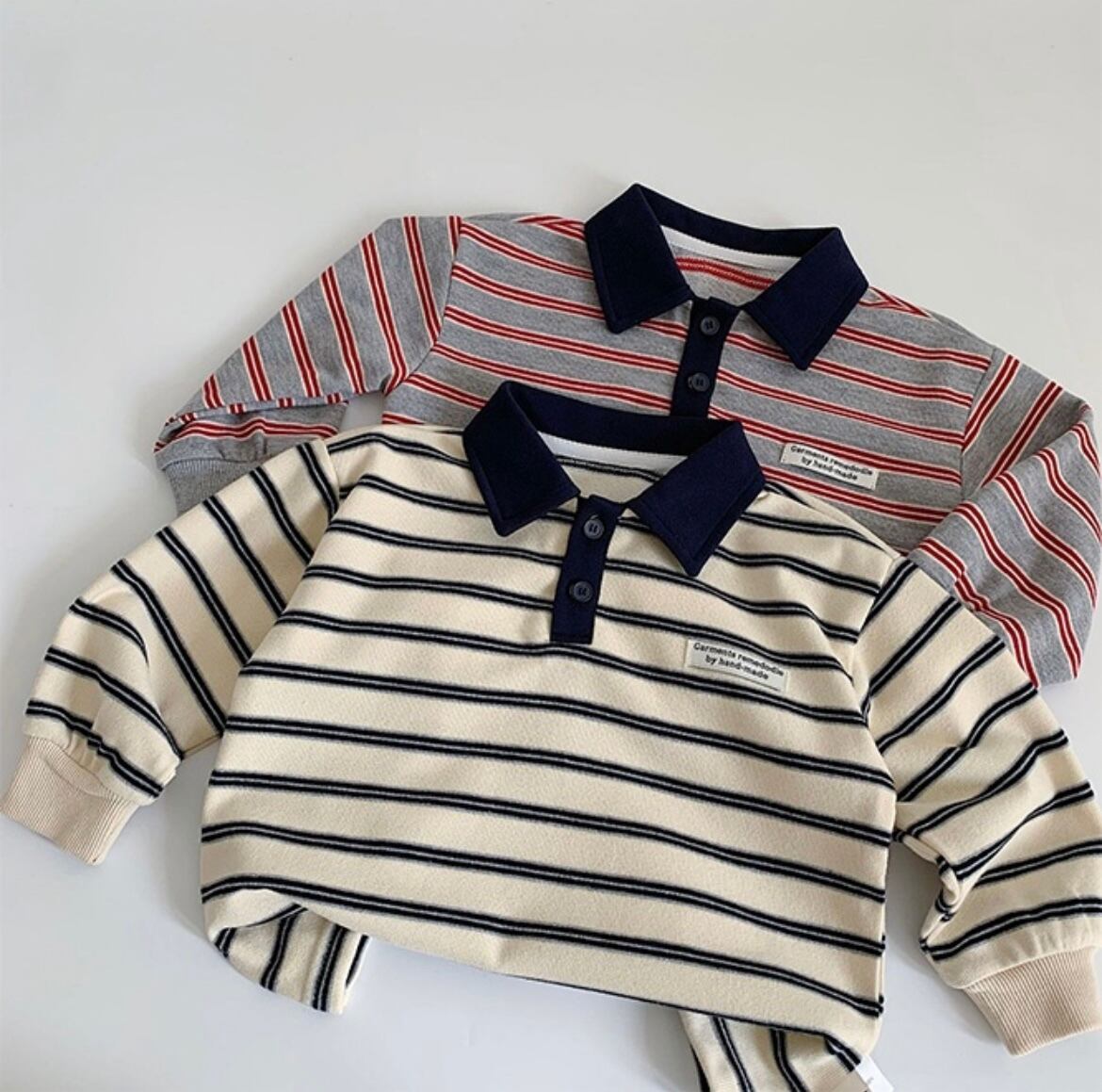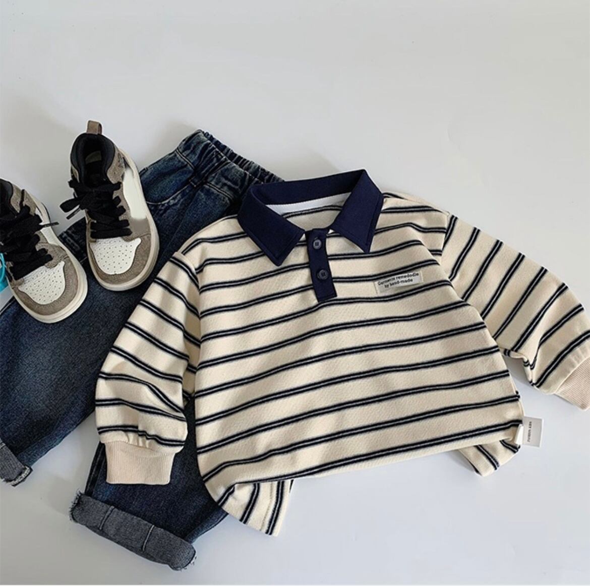 おしゃれで使いやすい、子供用ボーダー長袖ポロスウェットシャツが登場です!この男女兼用のトップスは、ストライプ柄が特徴で、シンプルながらも個性的なファッションを楽しめます。カジュアルなデザインは、普段使いにも特別なイベントにもピッタリ。快適さを追求したリラックスフィットなシルエットは、活発なお子様に最適です。お友達や家族とのお出かけにも、楽しいコーディネートが可能です!