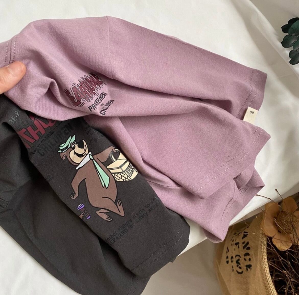 お子様の毎日を彩る、カートゥンベアプリントの長袖Tシャツが登場です!この商品は、可愛らしいカートゥンベアのデザインが特徴で、普段使いはもちろん、お友達とのお出かけにもぴったり。爽やかなパープルとチャコールグレーの組み合わせが、シンプルながらもおしゃれな印象を与えます。サイズは90と110の2種類をご用意しており、成長するお子様にもフィットします!