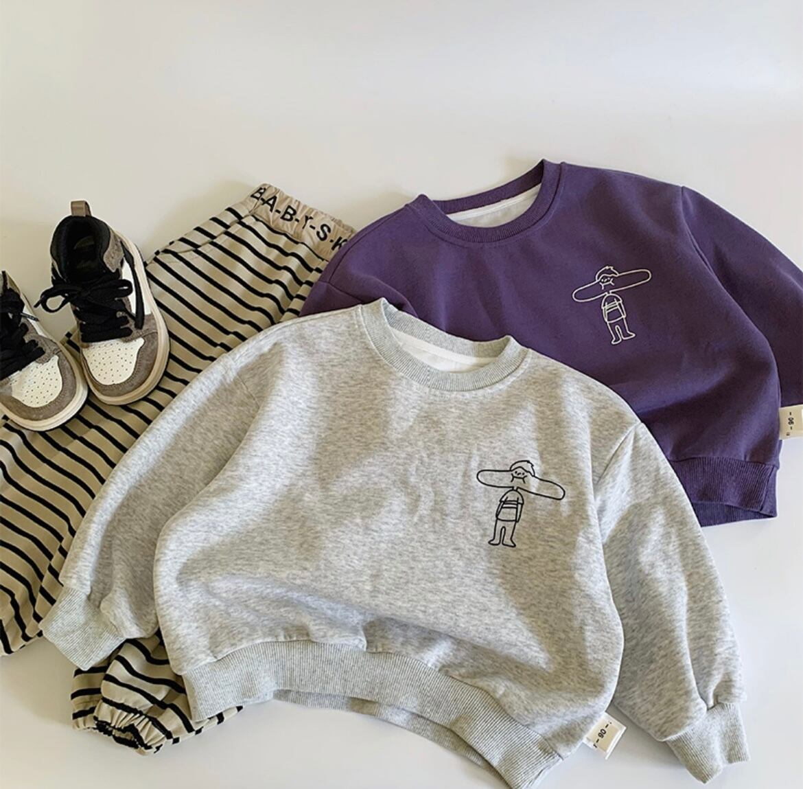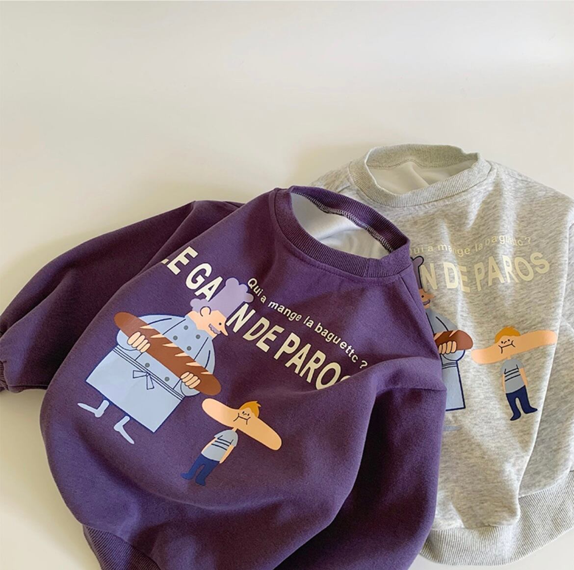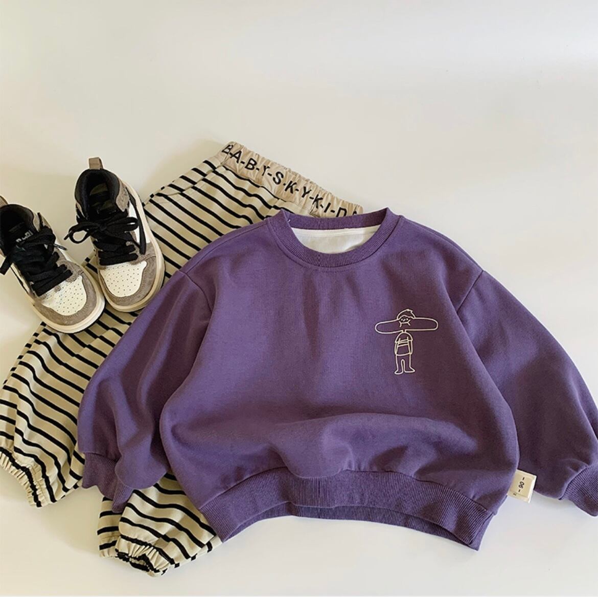おしゃれで楽しいカートゥーンプリントのスウェットプルオーバーが登場です!このプルオーバーは、カラフルなカートゥーンデザインが特徴で、男女兼用のユニークなスタイルが魅力。リラックスした着心地を実現する柔らかい素材を使用しており、普段使いやお友達とのお出かけにもぴったりです。成長段階のお子様のために、サイズは90と110の2種類をご用意しています!
