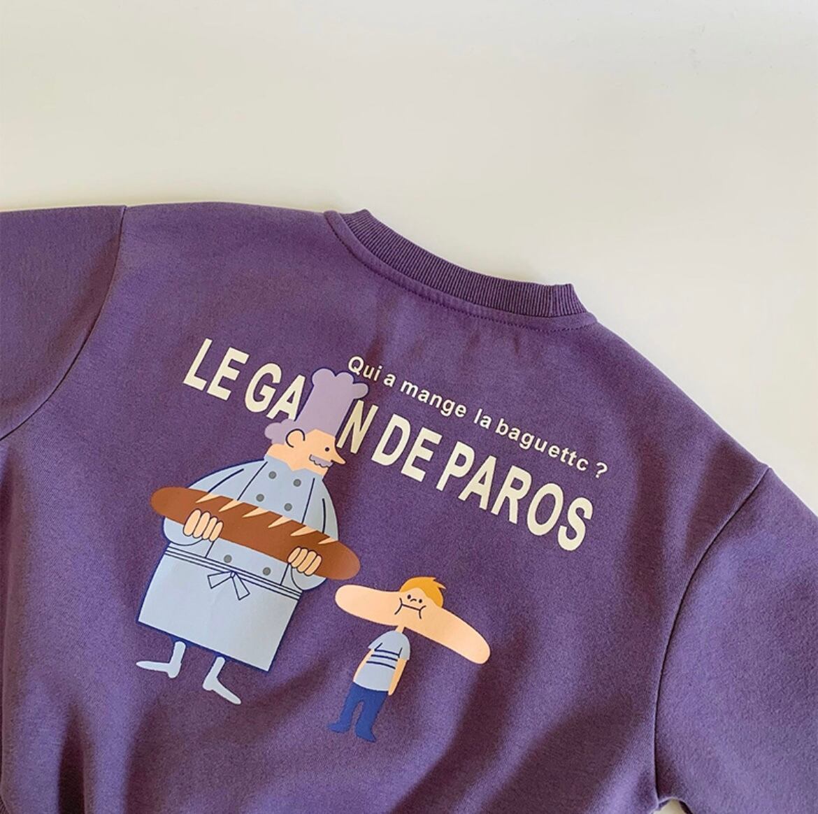 カートゥーンプリント スウェットプルオーバー サイズ90.110 パープル リネングレー
